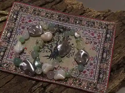 • Genuine mother of pearl, rose quartz, aventurine, and cracked crystal stones